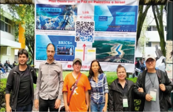 Wir nehmen an Konferenzen an den wichtigsten Universitäten Mexikos teil, bei denen es um die BRICS und den Oasenplan geht. Allein in zwei Konferenzen haben wir mehr als 350 junge Menschen persönlich erreicht. Auf dem Foto sehen Sie die spanischsprachige Broschüre über den Oasenplan. In derselben Woche hielten wir eine Konferenz via Zoom ab, an der Menschen aus mehr als einem halben Dutzend Ländern teilnahmen, darunter Kolumbien, Äquatorialguinea, Argentinien, Chile, Mexiko, die Vereinigten Staaten, Bolivien und Ecuador.