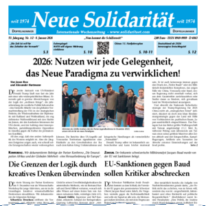 Liebe Leserinnen und Leser, dank Ihrer freundlichen Resonanz auf unseren Aufruf zur finanziellen Unterstützung ist es uns gelungen, das Jahr finanziell zu überstehen, auch wenn wir leider im vergangenen Sommer dazu gezwungen waren, die Erscheinungsweise der Neuen Solidarität von bisher acht Seiten wöchentlich auf zwölf Seiten alle zwei Wochen umzustellen.