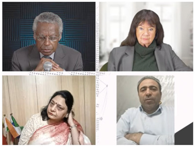 Helga Zepp-LaRouche, darunter Purnima Anand und Botschafter Chalil