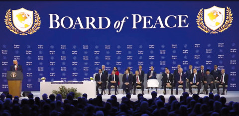 Donald Trump (links) bei der Vorstellung seines „Friedensrats“