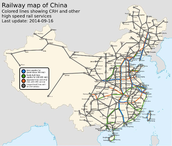 Abb. 4b: Das heutige Eisenbahnnetz in China.