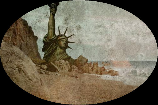 Ich war schon vor zwei Jahren hier und habe über den Krieg als Pathologie des Westens gesprochen, und dieses Bild, das sie hier sehen (Abbildung 1), habe ich auch schon in meinem ersten Vortrag verwendet. Für diejenigen unter Ihnen, die diesen Film nicht kennen: es stammt aus der letzten Szene des Films „Planet der Affen“. Und er zeigt, was mit der Erde geschieht, wenn sie das tun. Wenn sie nicht lernen, daß Krieg kein Mittel zur Lösung von Problemen ist, dann könnte die Erde so enden. Deshalb verwende ich dieses Bild in allen meinen Vorträgen, und ich hielt es für angemessen, das auch hier wieder zu tun.