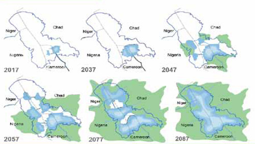 Abb. 4: Entwicklung der Tschadsee-Region durch das Transaqua-Projekt bis 2087.