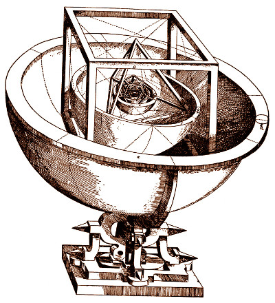 Johannes Keplers erste Hypothese über das universelle Prinzip des Sonnensystems 1596 war, daß die Struktur der Planetenbahnen – der Grund, warum jeder Planet seine bestimmten Entfernungen von der Sonne einnimmt und keine anderen – dem Prinzip entsprach, das sich in der Geometrie der fünf Platonischen Körper äußert. Dies ist ein Prinzip der Organisation des Raumes, das für unseren Sehsinn zugänglich ist.