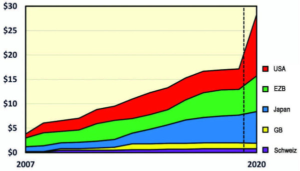 Abb. 1: In nur sechs Wochen wuchs die von der Federal Reserve ausgegebene