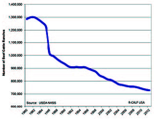 Abb. 2: Rückgang der Rinderfarmen in den USA 1980-2012.