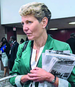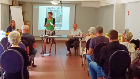 Die Landesvorsitzende der BüSo NRW, Ulrike Wolff, bei ihrem